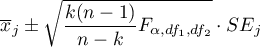 \overline{x}_j\pm\sqrt{\frac{k(n-1)}{n-k}F_{\alpha,df_1,df_2}}\cdot SE_j